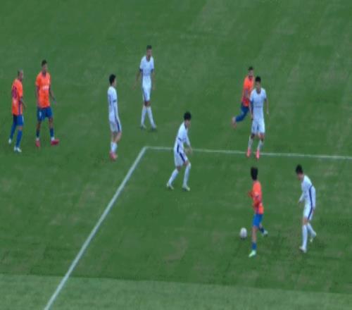 第55分钟,杨帆禁区内踢倒谢文能,主裁判回看慢镜头之后判罚点球,卡扎伊什维利主罚点球右脚低射被门将飞身封出。