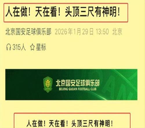 但是,被处罚的其中两家俱乐部的态度却截然不同。同样被扣5分和罚款40万元的北京国安和上海上港足球俱乐部,前者选择了正面硬刚,用“人在做,天在看,头顶三尺有神明!”来回应中国足协的处罚。可见北京国安对于中国足协的处罚到底有多不满,给人一种受了多大委屈的感觉。